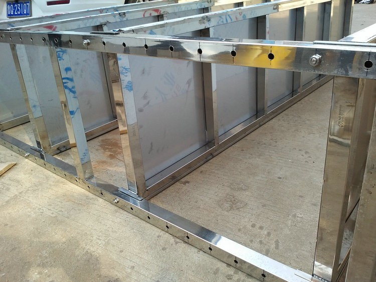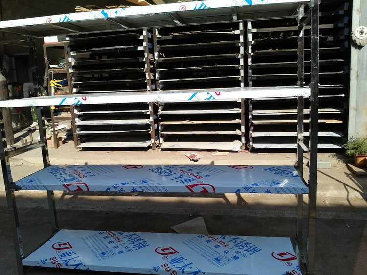 不銹鋼貨架可選用201或304不銹鋼材料、支架采用38*38不銹鋼方通制作。焊接美觀,受重力強。